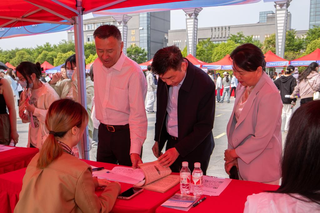 校领导王燕永、汪上、曹士东与滁州市卫健委副主任谢芳亲临现场,扎实推进“访企拓岗促就业”专项行动,与用人单位代表深入交流,详细了解就业市场最新动态和人才需求趋势,对各单位长期以来在学校人才培养、就业支持等方面给予的帮助表达诚挚谢意。面对现场求职的学生,校领导们亲切询问其就业意向、求职准备情况,鼓励大家立足自身实际,合理规划职业发展路径,以乐观积极的心态迎接职场挑战,在医疗卫生领域施展才华、实现价值。