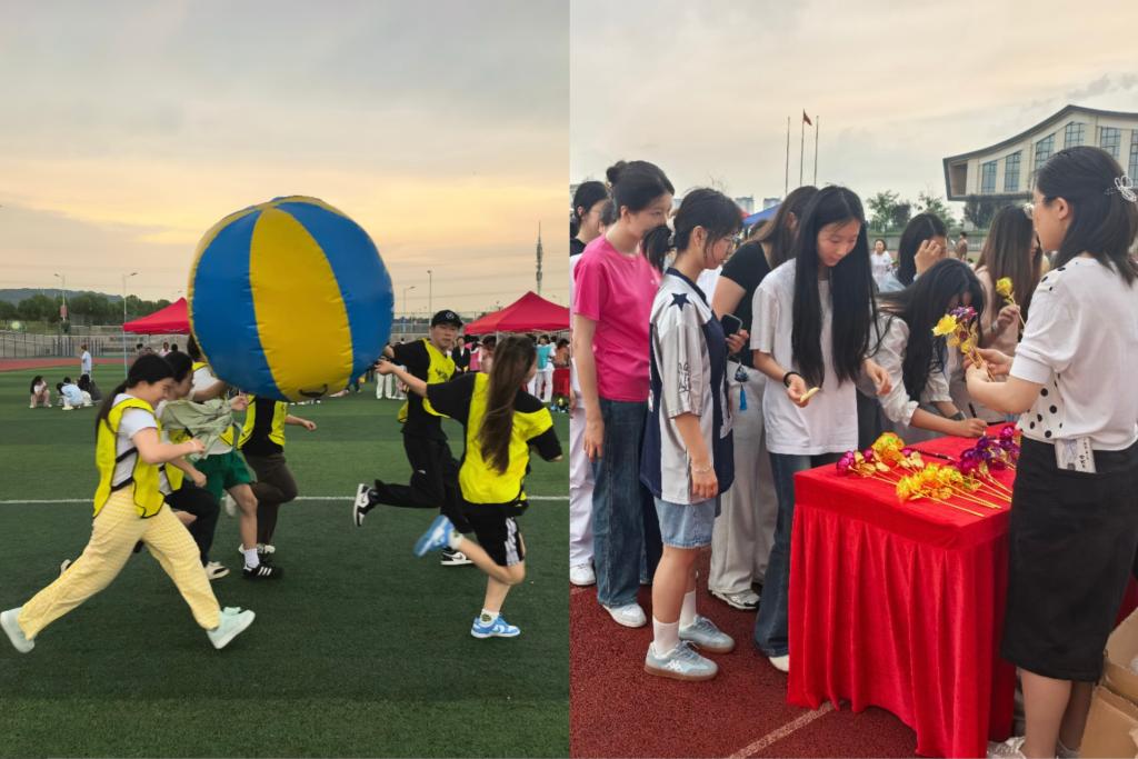活动现场热闹非凡,学生们兴奋地穿梭于各个游戏摊位之间。“无敌风火轮”考验团队协作能力,“托球跑”锻炼平衡与耐心,“舞龙舟”激发集体荣誉感,“玫瑰心愿”传达美好祝福,“百米画卷”则用画笔传递情感与创意。此外,各二级学院结合专业特色,推出了形式多样的心理互动项目。党员志愿者们则分布在各个活动环节,引导学生有序参与,耐心解答游戏规则,协助维护现场秩序,让每一位参与者都能在活动中找到属于自己的那份感动与收获。