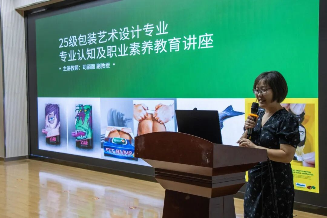 包装艺术设计负责人司丽丽老师,以食品、文创包装为例,拆解材料学、结构设计等课程重点,展现专业与市场的衔接。