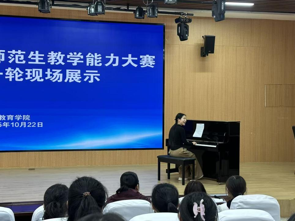 教育学院为备赛2025年安徽省师范生教学能力大赛,于10月22日下午在教育学院报告厅举办了第一次赛前汇报展示。进入决赛的五组选手齐聚一堂,进行了全面的赛前演练,三系主任及各赛项指导老师到场观摩并给予指导。