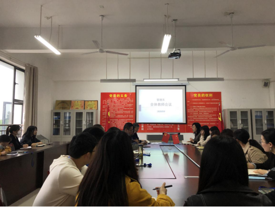 5月9日下午,管理系在系会议室组织召开学生返校复学前的准备工作会议。会议由系主任陈素霞主持,管理系全体教师参加会议。