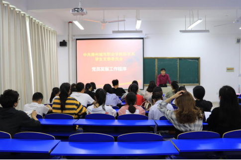 仪式结束后,由医学系学生支部书记郑杰为培训班学员们带来党课第一讲《党员发展的工作程序》,大家都以热情饱满、积极上进的心态聆听了党课教育。