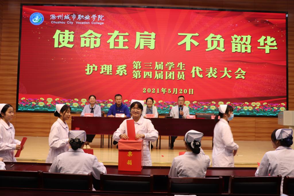 5月20日下午,护理系在学院第二报告厅召开第四届团员代表大会暨第三届学生代表大会。系党总支书记蔡季秋、学管秘书卢齐伟、学生党支部书记李勋华、系团总支书记王艳等领导老师出席了会议,会议代表共84名,出席大会的代表是来自全系近40个班级的优秀学生,代表着全系近1600名学生,具有广泛的代表性,并拥有选举权。系党总支副书记朱启来主持会议。