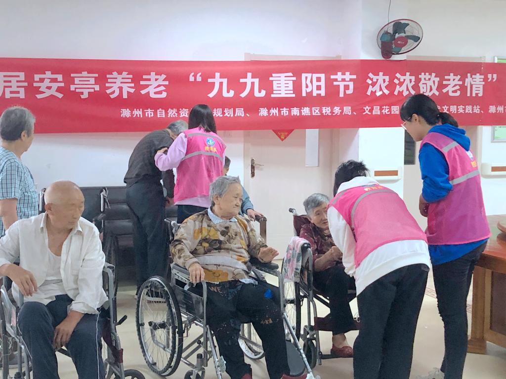 金秋十月爽,九九话重阳。10月14日是重阳佳节。为弘扬中华民族爱老敬老的优秀传统美德,营造尊老、爱老、助老的良好氛围,10月14日,教育系团总支书记黄正顺、辅导员于连娟、魏娟与青年志愿者一同怀揣尊敬与感恩来到滁州市南谯区安居养老护理中心为老人们献上节日祝福、开展志愿服务活动。