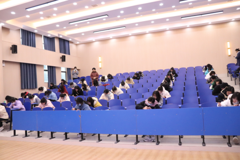竞赛内容采用笔试的方式,题目范围涵盖了党团知识、文明创城应知应会知识和十九届六中全会方面的内容,整个测试过程秩序井然。在答题过程中,学生们纷纷拿起手中的笔挥毫泼墨,书党团传统精神,述百年时代华章,写下自己的深刻理解。