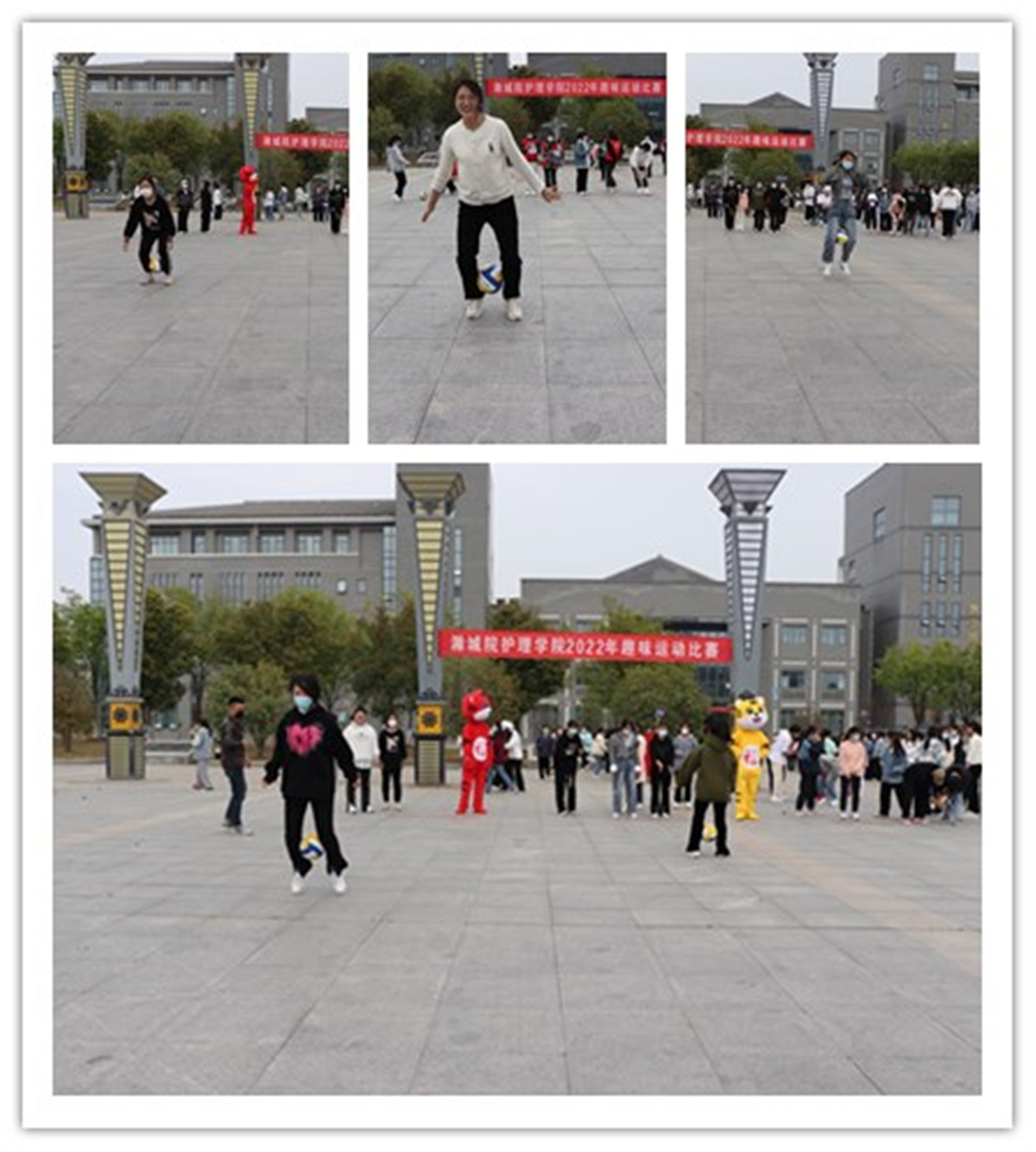 为贯彻落实校党委有关疫情防控期间工作的相关要求,做到疫情防控与文体活动协同推进,为鼓舞广大青年学生抗“疫”斗志,坚定抗“疫”信心,弘扬伟大抗疫精神,缓解学生焦虑情绪,丰富疫情防控封校期间课余文化生活,3月30下午,护理学院在图文中心南广场举办“疫”战到底—趣味运动比赛。