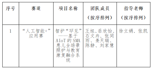 根据《关于组织推报“挑战杯”全国大学生课外学术科技作品竞赛“人工智能+”专项赛的通知》要求及挑战杯赛事规程,现将我校拟推荐项目公示如下: