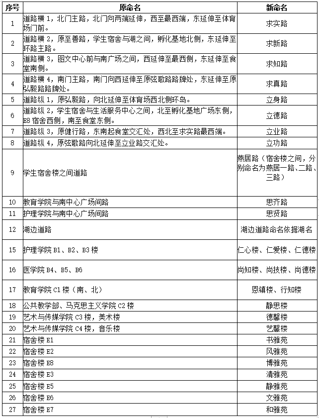 为加强校园文化建设,提高学校楼宇、道路名称使用的规范化水平,请各部门,教学院、部印发有关材料时,凡涉及相关楼宇或道路的,按现行名称予以规范标注。