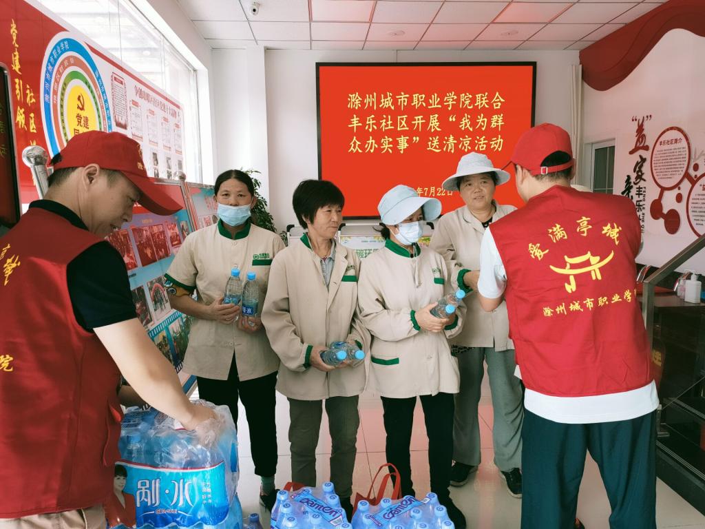 在包保社区,何洋等一支部党员同保洁人员亲切交谈,大力宣传防暑降温常识和高温应对措施,提醒大家在完成工作的前提下,合理安排工作时间,尽量避开高温时段,确保身体健康安全。保洁和其他一线人员感谢学院的清凉慰问,纷纷表示,虽烈日炎炎,但会始终坚守岗位,恪尽职守,积极投身社区环境建设,为滁州城市的文明建设和丰乐社区的和谐发展贡献更多力量。(文/图:刘亮  秦海娇)