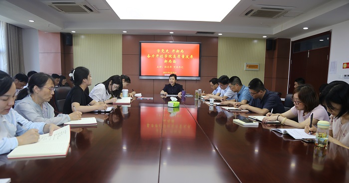 为庆祝中国共产党成立100周年,进一步引导党员真正做到学党史、悟思想、办实事、开新局,6月23日,院党委书记张志华结合个人参加党史学习教育的认识体会,以《学党史开新局努力开创学院高质量发展新局面》为题,为所在支部机关一党支部和所联系教育系党总支讲授党课,党委委员、纪委书记程一斌,党委委员、办公室主任、宣传统战部部长陈通、教育系党总支书记钱庆兵及33名党员聆听了党课。