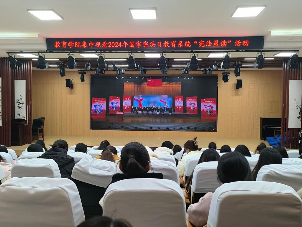 4日上午,教育学院组织学生集中直播观看2024年国家宪法日教育系统“宪法晨读”活动,通过线上生动而富有教育意义的形式,让宪法知识深入人心。直播活动中,师生依托视频平台共读宪法,法治宣讲专家深入解读了宪法的重要性与现实意义,教育系统各地师生还通过实际行动展示了尊法学法的实践成果。通过观看直播活动,学生们进一步认识到,宪法是国家的根本大法,是维护社会公平正义的重要保障。