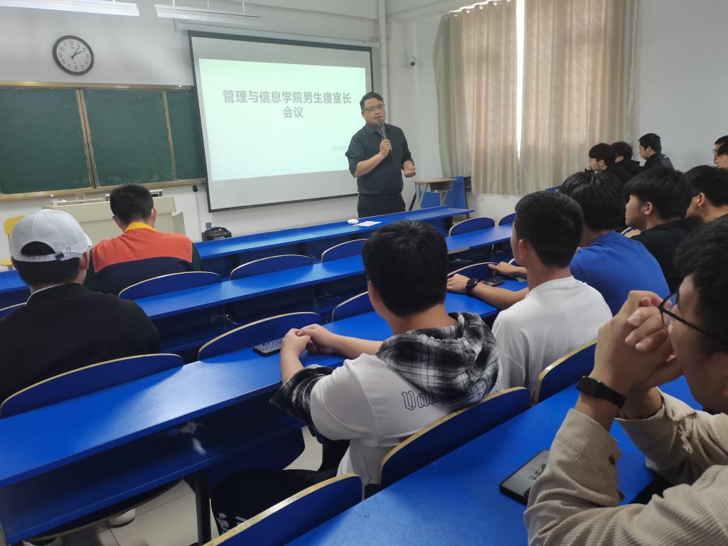 为把学生宿舍安全工作落到实处,5月19下午2:00,管理与信息学院在C1-1103教室召开男生寝室管理专题会议。院党总支书记陈兴旺,学管秘书唐静,相关班级辅导员及学院各男生寝室寝室长和寝室成员代表近120多参加会议。会议由陈兴旺主持。本次会议旨在更好地落实教育厅对高校学生宿舍管理工作的指导意见,切实加强高等学校学生公寓管理工作,进一步改善学生的生活和学习条件。会议首先由陈书记就我校开展学生宿舍检查情况进行了说...